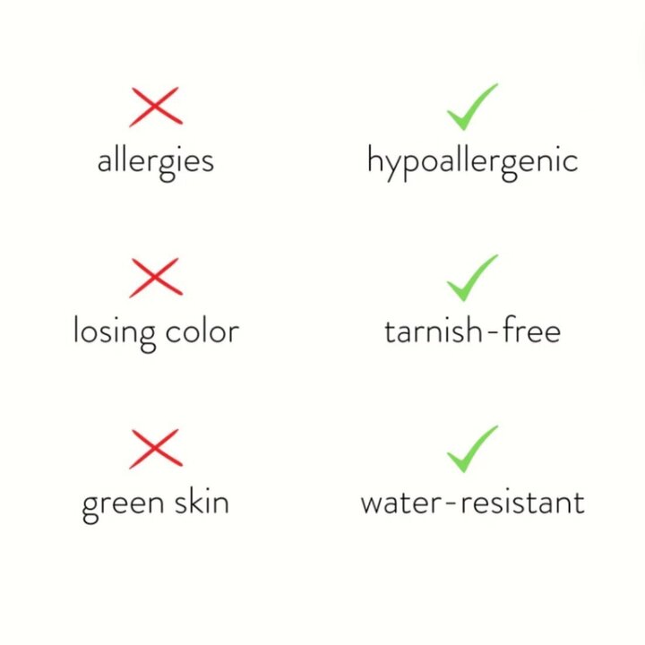 Tillverkad av vattentåligt rostfritt stål, behöver du aldrig mer oroa dig för att smycken ska blekna eller få fläckar.