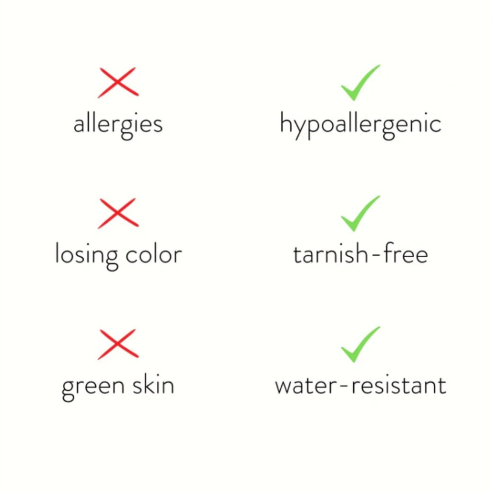 Tillverkat av vattentåligt rostfritt stål, behöver du aldrig oroa dig för att smycken ska blekna eller oxidera igen.