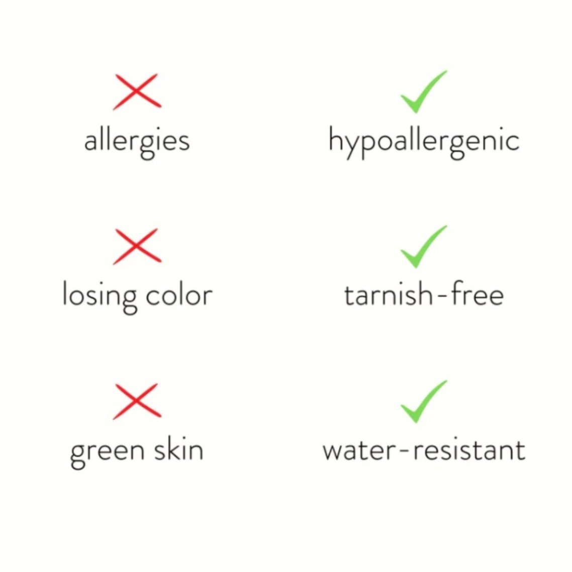 Tillverkat av vattentåligt rostfritt stål, så du behöver aldrig oroa dig för att smycken bleknar eller missfärgas igen!